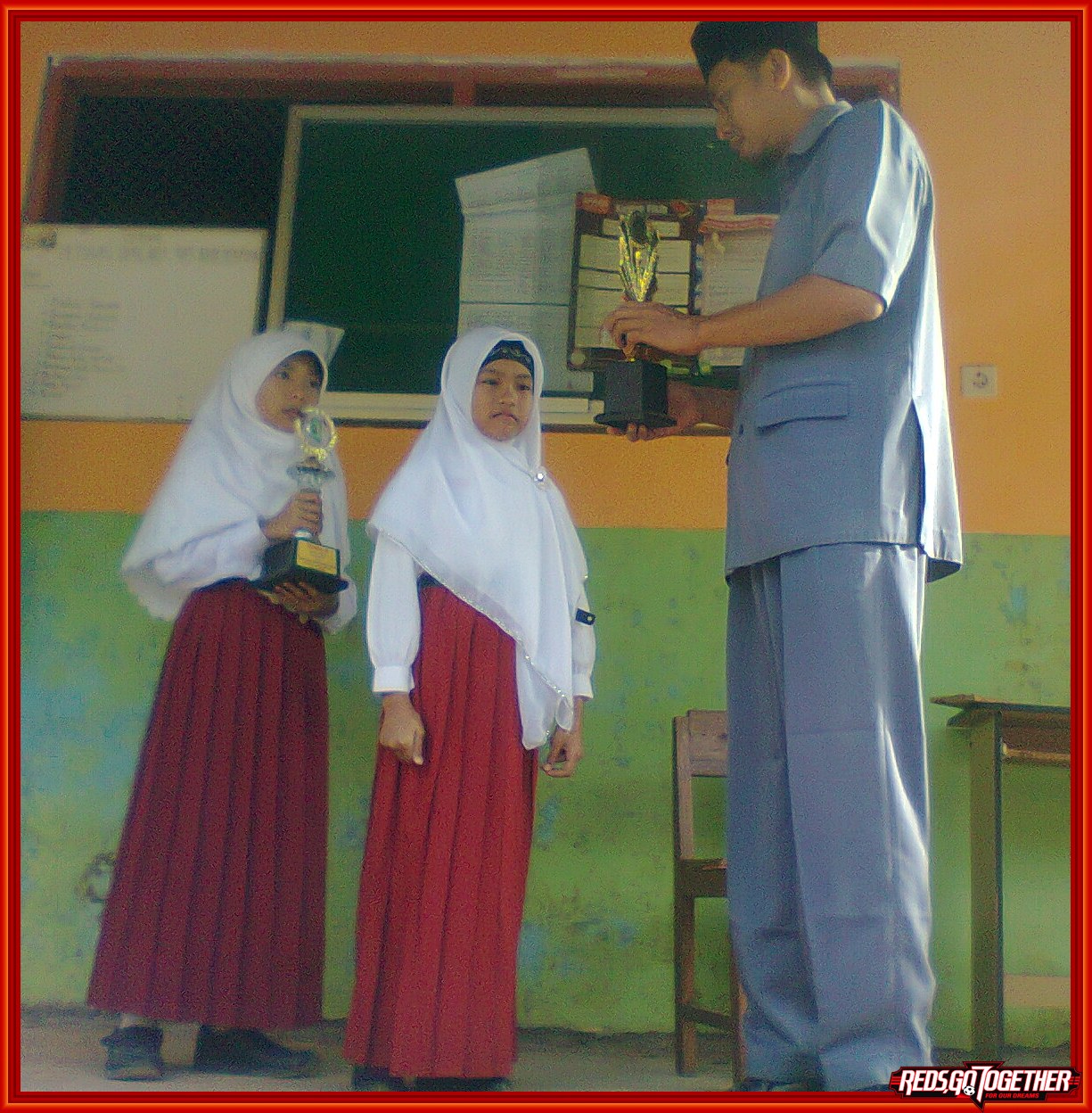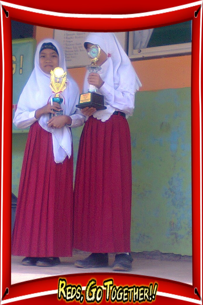 (Senin, 27 Agustus 2012). Bangga rasanya bisa menjadi siswa berprestasi. Menyumbangkan sesuatu untuk diri sendiri, keluarga, sekolah, masyarakat, bangsa, dan negara. Bermodal rajin, ulet, pantang menyerah, serta doa dan usaha. Seperti terlihat pada gambar di samping, dua siswi sedang memegang piala. Mereka telah menyumbangkan prestasi yang cukup mengharumkan nama baik keluarga dan sekolah. Siska (kelas V_sebelah kiri); juara 2 lomba berberita kreatif tingkat kecamatan. Naza (kelas VI_sebelah kanan) juara 2 tartil Qur’an tingkat kabupaten.